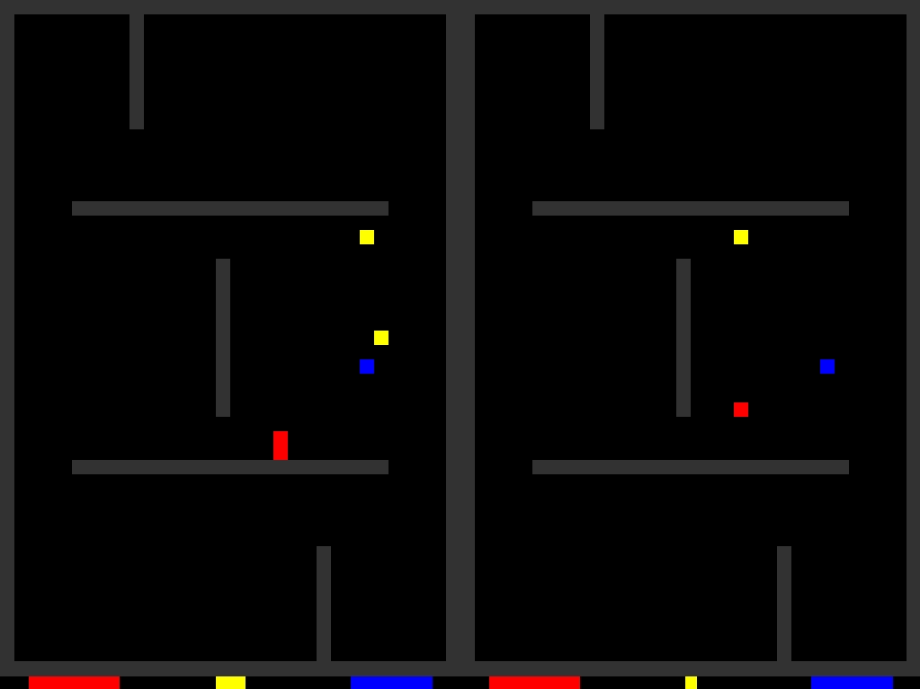 The third game on the website comes three years after the previous one and marks the beginning of a period of much more frequent releases (Increpare releases 13 more games in the last three months of the year). A 2-player split-screen grid-based top-down shooter with minimal visuals and special-relativistic mechanics. What you see on your side of the screen (ie the other player and the moving bullets) is delayed, I guess by some factor depending on distance. There are 6 different levels with different layouts. I played for a few minutes with a friend and it was ok. It's hard to really grasp anything about the mechanic other than noticing the delay, maybe you would have to play for longer to get more into it.
